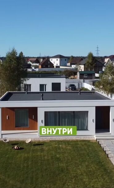- Архитектура: минимализм с панорамным остеклением, комбинированная отделка фасада (штукатурка + деревянные панели), плоская кровля.