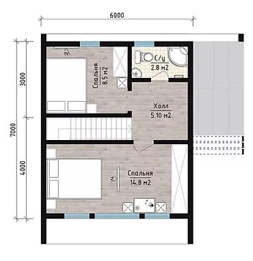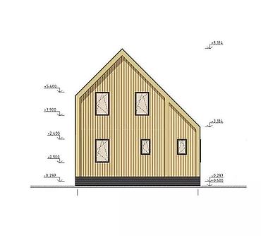- Габариты: компактный вытянутый объем, удобен для узких участков; рациональная застройка с сохранением приватного двора за домом.