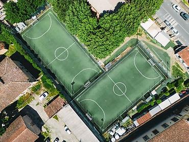 - Два полноразмерных футбольных поля и несколько мини‑полей с искусственным покрытием, разметкой и воротами.