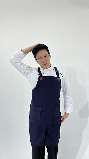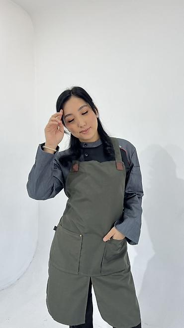 - Фартук бариста/повара удлинённый. Прямой крой с центральным разрезом для свободы шага. Регулируемые лямки на карабине, накладные вместительные карманы спереди, усиленные заклёпками. Представлен в тёмно‑синем и оливковом цветах.