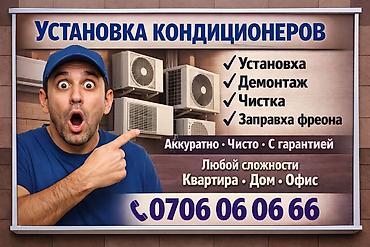 Установка кондиционеров любой сложности Выезд за 30 минут. Качество+ гарантия Кондиционердин баардык турун орнотобуз,шаардын ичине 20-30 минутта барабыз ишибиз ар дайым сапат+ кепилдик менен