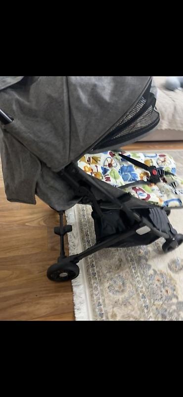 Подходит для ежедневных прогулок по городу и поездок: маневренная, удобная для родителей и ребенка. Цвет: серый текстиль рамы/капюшона, черное шасси, многоцветный вкладыш.