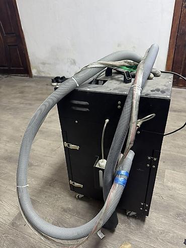 - Комплект включает основной блок на колесиках и длинные шланги всасывания.