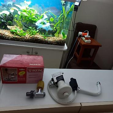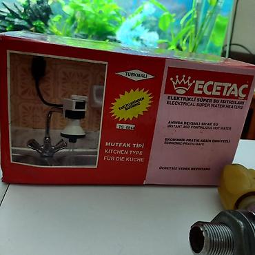 - Комплектация на фото: блок нагревателя с регулятором, излив-«гусак», переходник/трёхходовой кран-переход, шланг, оригинальная коробка.