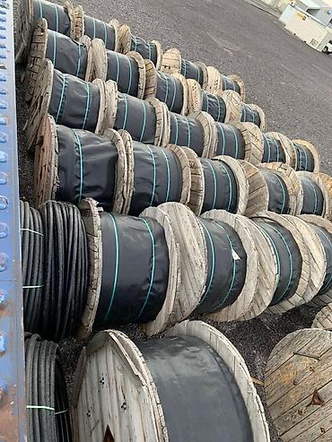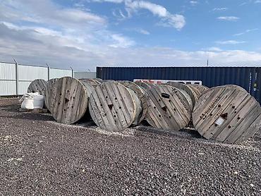 Предлагается промышленная партия силовых и монтажных кабелей/проводов в больших намотках на деревянных барабанах, а также бухты стального/алюминиевого каната (троса) для ЛЭП/подвеса. На фото — складские остатки с наружной обмоткой в защитной плёнке.
