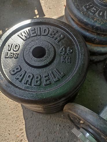 - Комплектация: диски Weider, прямые грифы под гантели с резьбой, фиксирующие гайки-звёздочки