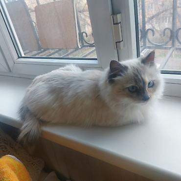 Порода: длинношерстная кошка колор-пойнт (похожая на рэгдолл/бирманского типа).