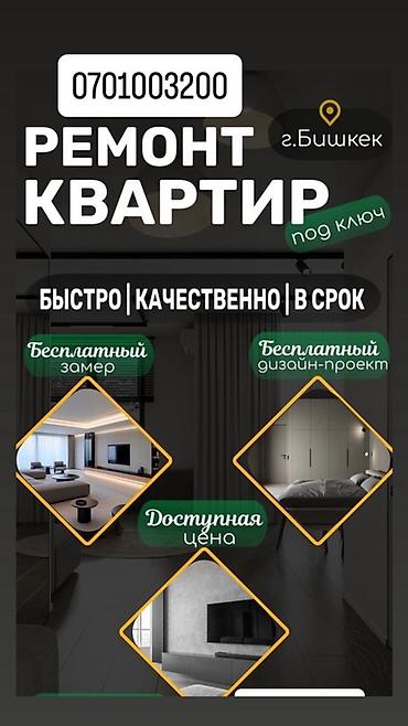 Ремонт квартир под ключ в г. Бишкек. - Полный комплекс работ: от черновых этапов до чистовой отделки и комплектации. - Быстро, качественно и в срок. - Бесплатный замер. - Бесплатный дизайн‑проект....