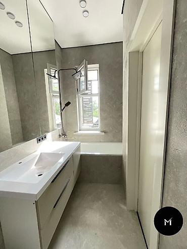 - Санузлы: разводка и монтаж сантехники, гидроизоляция, укладка керамогранита, установка мебели и аксессуаров.