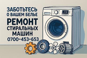 Ремонт стиральных машин любой сложности Выезд мастера на дом по Бишкеку Без дополнительных условий! К вашим услугам ремонт стиральных машин всех известных марок: Ariston, Beko, Bosch, Electrolux, H...