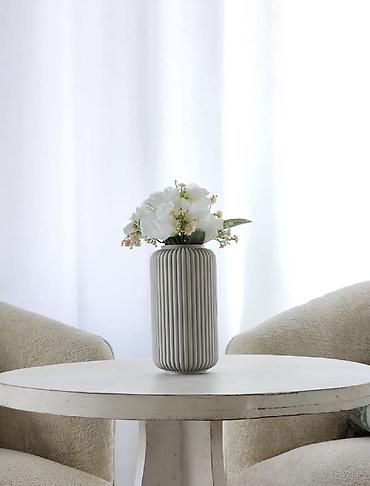 Лаконичный акцент для кофейного столика, консоли или тумбы; подчёркивает натуральные оттенки и свежие цветы.