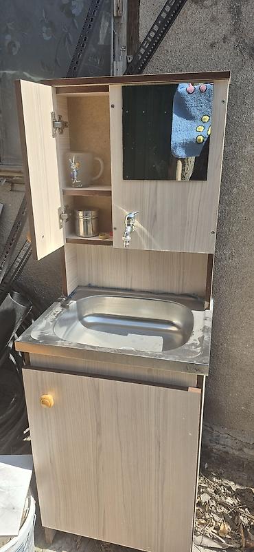 Металлическая умывальня с тумбой и баком фиксированная цена - Материал: сталь. - Конструкция «тюльпан»/напольная: нижняя закрытая тумба с дверцей и круглой рукояткой, сверху — квадратная мойка-р...