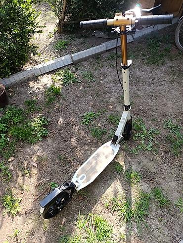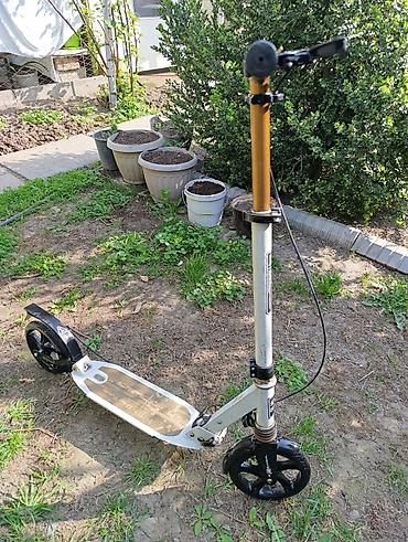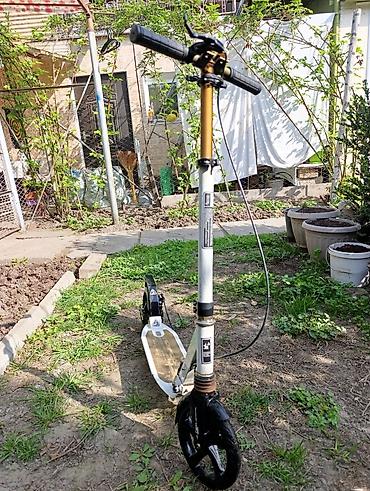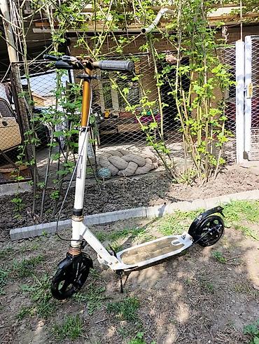 Городской самокат с амортизацией и ручным тормозом.Хорошем состоянии выдерживает 100кг - Складная конструкция: компактно складывается для переноски и хранения. - Колеса большого диаметра (переднее...