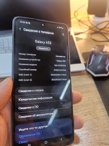 Продаю Samsung A52 хороший состояние Память 128ГБ 8ГБ оперативка 60FPS 64Мп камера чётко снимает 60-90 процесор Snapdragon 7205G хороший батарейка хорошо держит 4500МаЧ можете звонить или писать от...