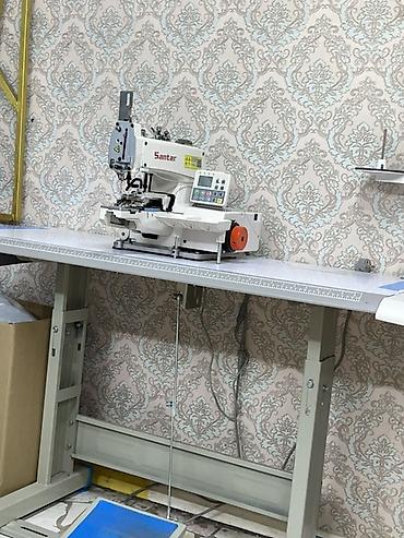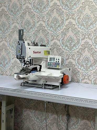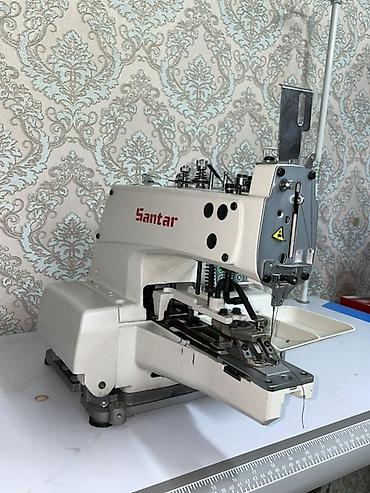 Промышленная пуговичная машина марки Santar. Это специализированная швейная машина, предназначенная для полуавтоматического пришивания плоских пуговиц.