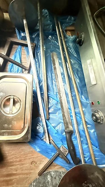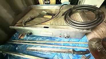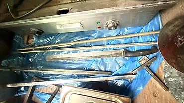 Шаурма бургердин жаречный печи,бычактары,эт илгичтери жана башка суроттогу баардык комплекттери сатылат баардыгын кошуп 25000 сомго берем отдельно сатылбайт состояниеси идеально 2.3 кун колдонулган