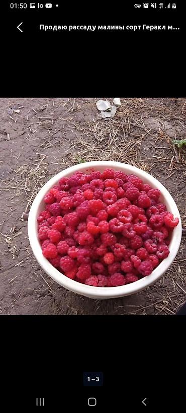 Саженцы малины, крупноплодные. На фото — мощные кусты с конусовидными ягодами насыщенно‑рубиновый цвет, плотная друпа, кисти по нескольку плодов. Ягоды сладкие с лёгкой кислинкой, ароматные, хорошо держат форму и подходят для свежего потребления, заморозки и переработки (варенье, компоты). Урожайность высокая — с куста формируются многочисленные плодоносные побеги, сбор растянутый. Кусты компактные, с прямостоячими побегами, удобны для ухода и сбора. Подходит для открытого грунта, высадки весной и осенью.