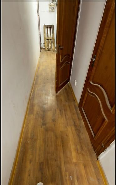 - Напольное покрытие под дерево по всей комнате и в коридоре, плинтусы установлены.