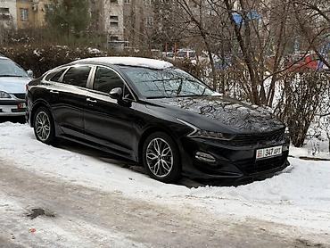Kia K5, черный седан-лифтбек с динамичным дизайном.