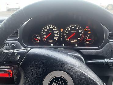 Subaru Legacy B4 (седан), серебристый цвет, правый руль. Полный привод Symmetrical AWD. Турбированный мотор (воздухозабор на капоте), спортивный выхлоп. АКПП. Литые диски Subaru 5 лучей, зимняя резина. Тонировка по кругу, задние фонари затемнены, задний спойлер. Противотуманные фары, ксенон/линзы в передней оптике. Салон тканевый, комбинированные велюр-вставки, передние спортивные сиденья, задний диван на три места с подголовниками. Электростеклоподъёмники, центральный замок, кондиционер/климат, подлокотник, мультируль Subaru Momo, аудиосистема, 12V розетка. VIN/номер кузова и другие данные не указаны на фото. Номерные знаки KG (Кыргызстан).