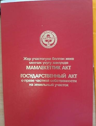 Государственный акт о праве частной собственности на земельный участок (Кыргызская Республика). - Официальный документ в красной обложке с гербом и двуязычным названием (кыргызский/русский). - Пре...