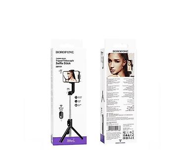 В комплекте: селфи‑палка‑штатив, беспроводной пульт. Цвет: чёрный. Модель: BOROFONE DBY01 Tripod Telescopic Selfie Stick.