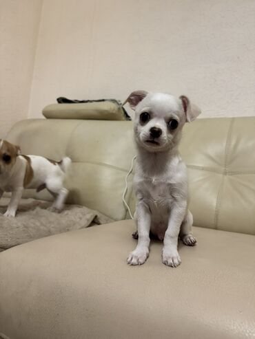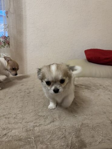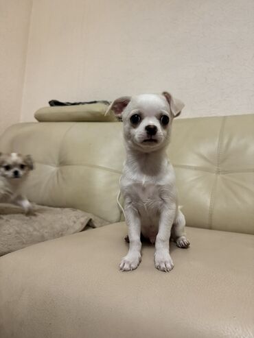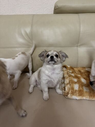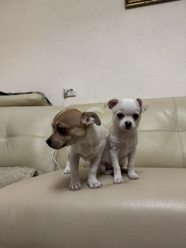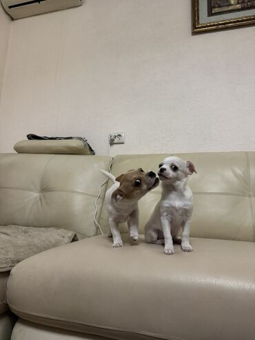 - Маленькие компактные щенки породы чихуахуа, короткая гладкая шерсть.