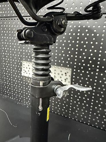✅Телескопическая стойка с эксцентриковыми зажимами: быстрая регулировка высоты без инструмента (два хомута — у седла и у основания).