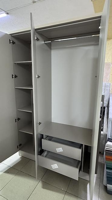 - Подойдёт для спальни, прихожей или гардеробной: совмещает отделение для длинной одежды, ящики для белья и множество полок для аккуратной организации.