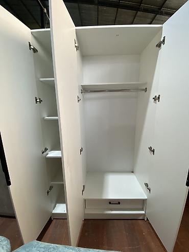 Шкаф-гардероб четырехдверный с выдвижными ящиками - Конфигурация: 4 распашные двери + 2 глубоких выдвижных ящика снизу. - Внутреннее наполнение (типовое): отделения со штангами для вешалок и полоч...