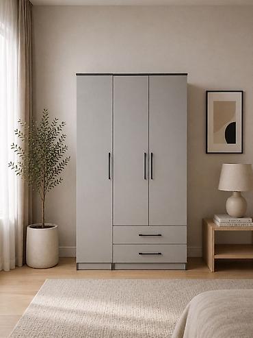 Функциональный шкаф обеспечивает хранение длинной одежды, повседневных вещей и аксессуаров в одном месте, поддерживая порядок и аккуратный внешний вид комнаты.