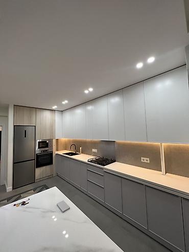 - Тихая и надежная фурнитура: петли и направляющие с доводчиками, ровная подгонка фасадов.