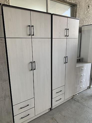 Трёхдверные платяные шкафы с выдвижными ящиками Описание: - Форм‑фактор: 3 распашные двери + 2 глубоких нижних ящика. - Фурнитура: вертикальные чёрные ручки, скрытые петли, направляющие на ящиках ...