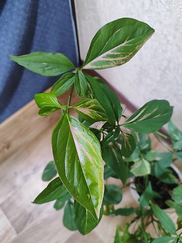 - Листья стреловидной формы, с выраженной вариегатностью: мраморные светло‑зеленые и кремово‑белые/розоватые штрихи и сектора.