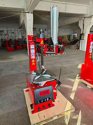 - Шиномонтажный станок полуавтоматического типа с откидной стойкой. Поворотный стол с самоцентрирующимися кулачками, педальное управление (4 педали), пневмораскеп (отжим боковины), боковой вспомогательный ролик/опция для низкопрофильных и жестких шин, держатель монтировки, манометр и шланг для накачки. Стол рассчитан на работу с легковыми и легкими коммерческими колесами.