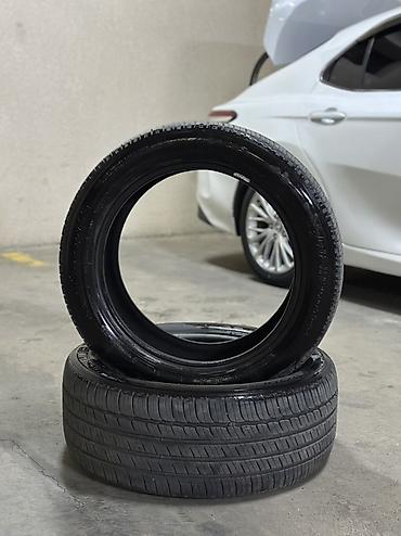 Пара летних автомобильных шин (2 шт.). - Тип: легковые, летние - Посадочный диаметр: ориентировочно R17–R18 (визуально по профилю; уточняйте по маркировке на борте) - Ширина и профиль: ориентирово...