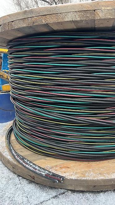 Маркировка на оболочке присутствует; кабели аккуратно намотаны на деревянные барабаны и стянуты лентами для транспортировки.