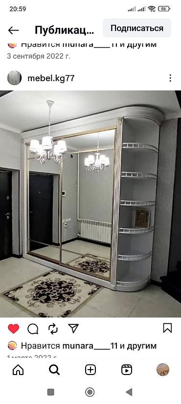 Шкаф купе сатылат состояние жакшы размер ширина 1.80 высота 2.20 глубина 60 Бир эшик полка эки эшик вешалка