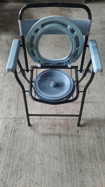 Кресло-туалет (комнатный стул с санитарной вставкой) - Складная конструкция на металлической раме, устойчивые ножки. - Мягкая спинка и сиденье из кожзаменителя; сиденье с вырезом под съемное ведро...