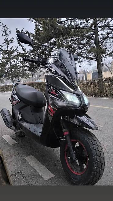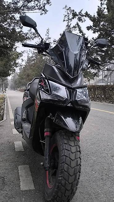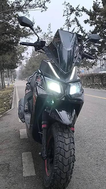 Скутер 150–200 см³ (визуально) в агрессивном стиле, черный, с высоким ветровым стеклом и светодиодной оптикой.состояние отличное, брал для себя , не курьерская