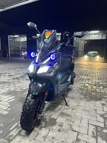 Скутер 50–150 см³ класса «спорт-эндюро» с двойной круглой оптикой. Основные особенности: - Агрессивный дизайн: двойные круглые передние фары, литые зеркала, «Х»-декали по бокам. - Большие колёса с...