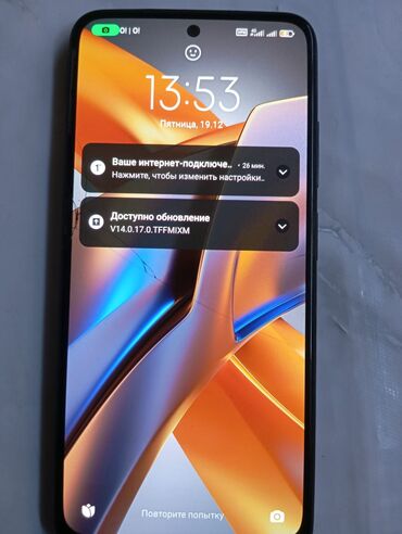 - Дисплей с тонкими рамками и отверстием под камеру по центру. На экране видна доступность обновления MIUI V14.0.17.0 (TFFMIXM).