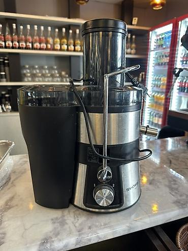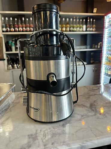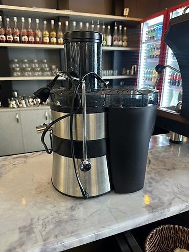 Подходит для быстрого получения свежего сока из яблок, моркови, цитрусов, свеклы и др. Легкая разборка для мытья, современный лаконичный дизайн из металла и пластика. Марка: Техномир (логотип на корпусе).