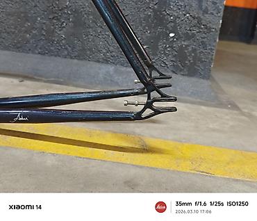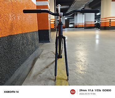 - Тип: жесткая трековая/шоссейная рама под ободные тормоза (крепления под калиперы на вилке видны), задние перья — горизонтальные дропаута под синглспид/фикс