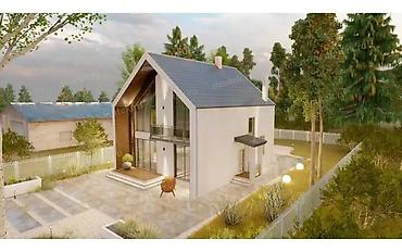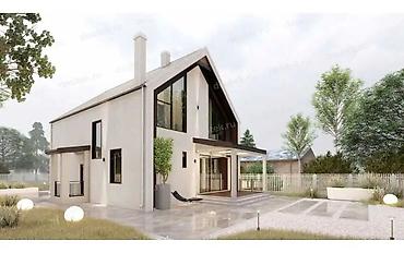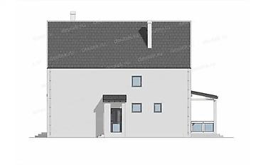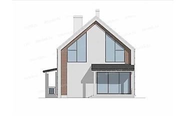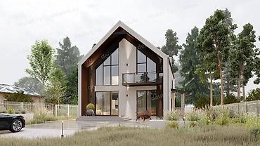 - Детали: вертикальные деревянные ламели в нишах, современная входная группа с навесом, энергосберегающее остекление, аккуратный дымоход.