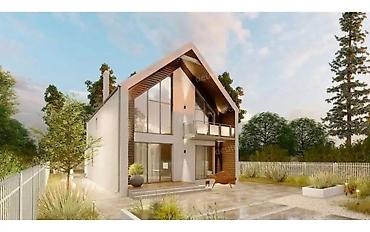 - Архитектура: лаконичные линии, двускатная кровля, выразительный фасад с комбинацией штукатурки и деревянных акцентов.