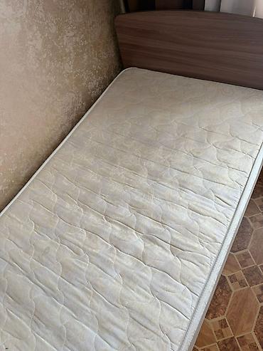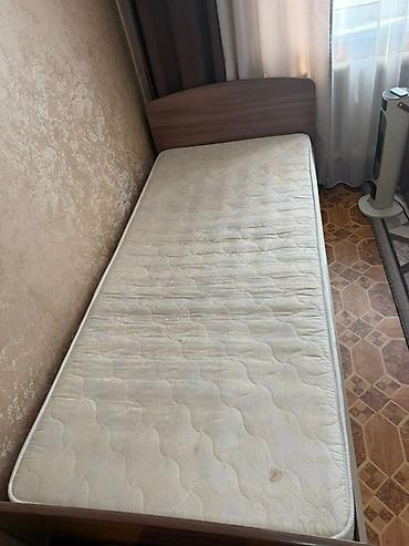 - Односпальная кровать с высоким изголовьем, спальное место ориентировочно 90×200 см. Основание – ламели/щит с подъёмом матраса для доступа к двум выкатным ящикам под кроватью (белые фасады) для хранения постельного белья и вещей. В комплекте матрас.