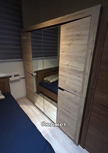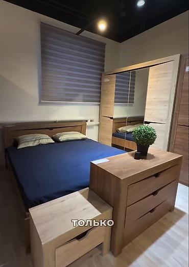 Спальный гарнитур в современном стиле, цвет теплый дуб. каркас кровати железный, пользовались очень мало, шкаф не распокавали новый. Продается только кровать и шкаф.