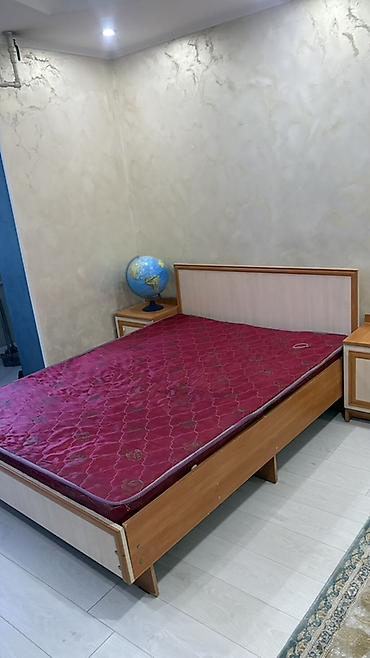 - Кровать двуспальная с высоким изголовьем. Основание на опорах, матрас на фото входит в комплект.