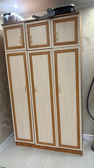 - Шкаф трехстворчатый с верхними антресолями (шесть дверей в общей секции) — удобное решение для хранения одежды и сезонных вещей.